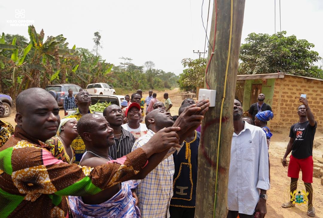 The Member of Parliament for Ofoase Ayirebi Constituency who is also the Minister for Information, Kojo Oppong Nkrumah led a team made up of the District Chief Executive of Akyemansa, Hon. Paul Asamoah, NPP executives in the constituency as well as officials of the Electricity Company of Ghana to commission the projects in the communities.
