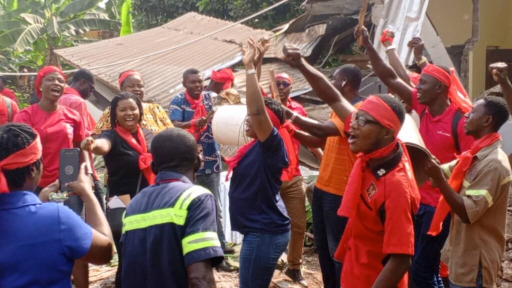 The workers are demanding among other things that the walls and the boy’s quarters be rebuilt; every destroyed property restored and the private developers called to book and investigated.