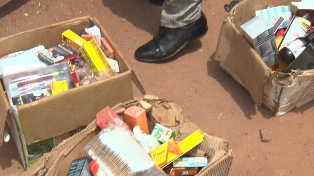 Officials displayed the confiscated items after the operation, describing them as illegal and unapproved drugs banned under Ghanaian law.