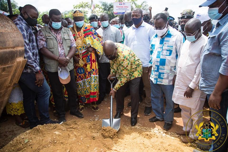 President Akufo-Addo has cut the sod for the commencement of construction of the 71.25-kilometre Enchi-Elubo Road, which is being funded by COCOBOD.