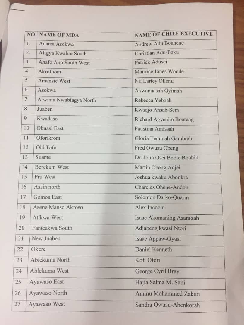 President Nana Akufo-Addo has nominated 38 Municipal and District Chief Executives for the newly created Assemblies in the country.