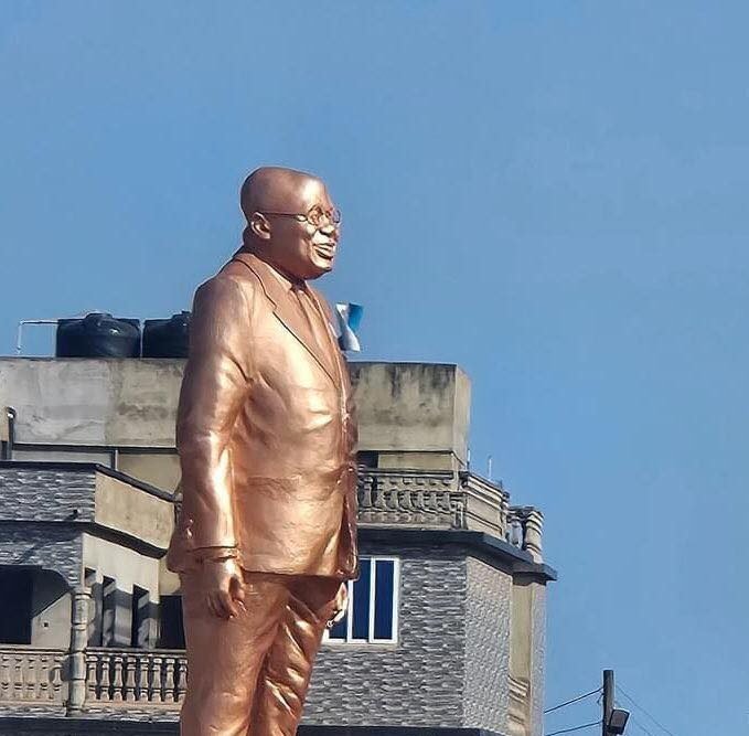 The statue, located at an intersection near Effia Nkwanta on the ongoing Sekondi road construction project, was installed to recognize President Akufo-Addo’s contributions to infrastructure development in the region.