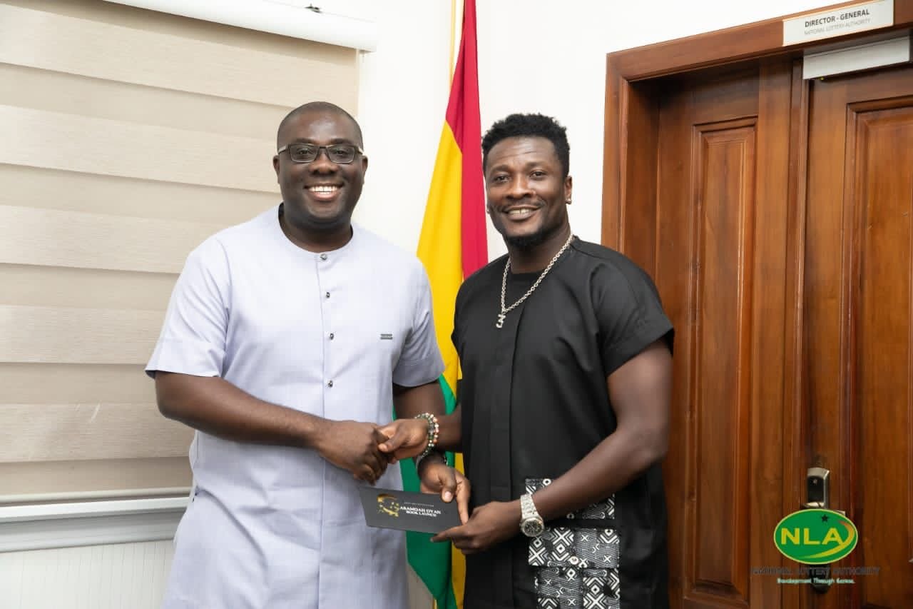 Asamoah Gyan who was at the offices of NLA to invite the Director-General, Mr. Samuel Awuku to his book launch says the NLA has been greatly improved under Mr. Samuel Awuku.