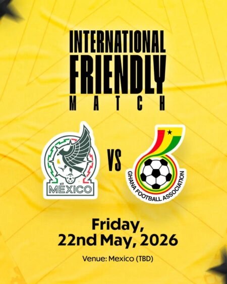 Ghana’s national football team, the Black Stars, will face Mexico on May 22, 2026, in their third and final friendly before the 2026 FIFA World Cup.