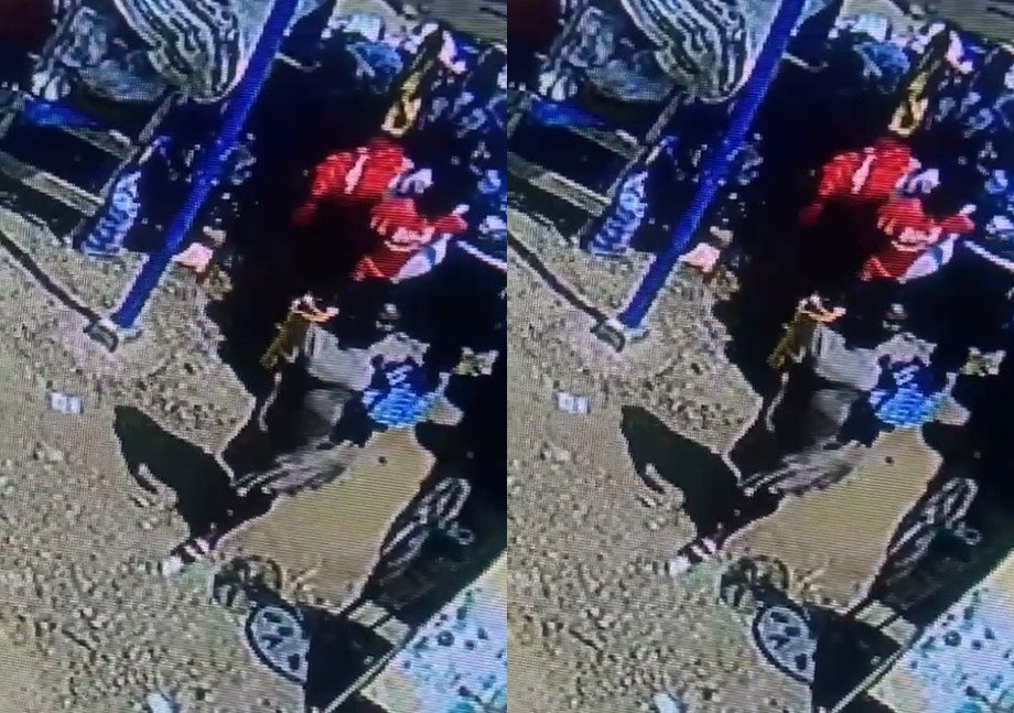 The footage shows the woman fleeing the busy market with the child, who was reportedly stolen from her mother, Esi Sekyiwa, while she was selling cassava at the Ajumako market.
