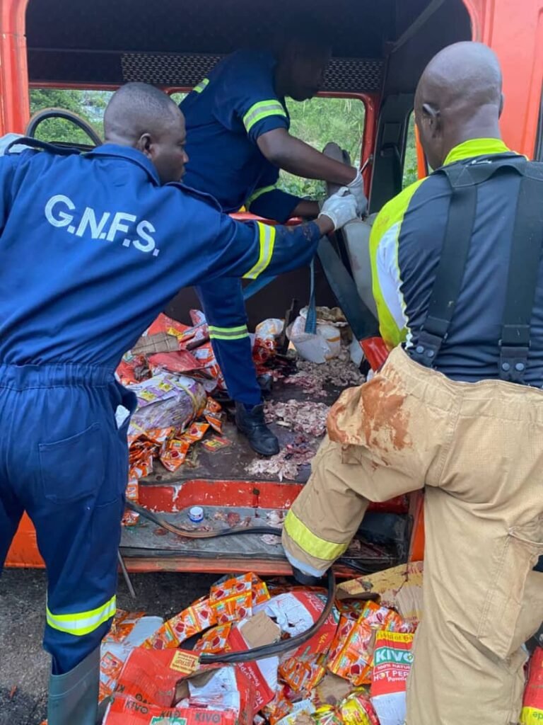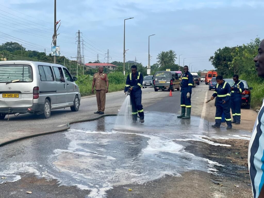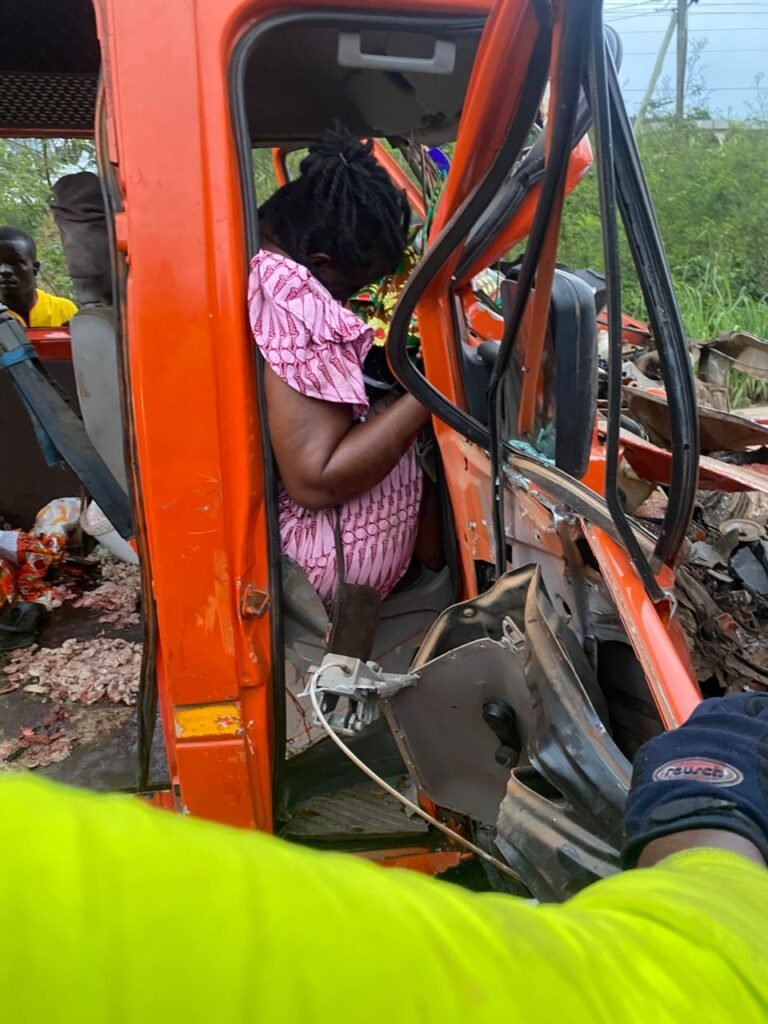 A Sprinter bus rammed into a broken-down truck near the National Democratic Congress (NDC) Regional Office on the Accra-Cape Coast Highway at dawn on Tuesday, September 23, 2025.
