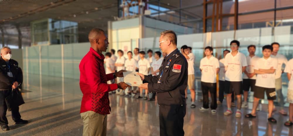 Photographs released by the Immigration Service show Chinese nationals being received by their country’s authorities upon arrival to face prosecution for illegal mining and related fraud charges.
