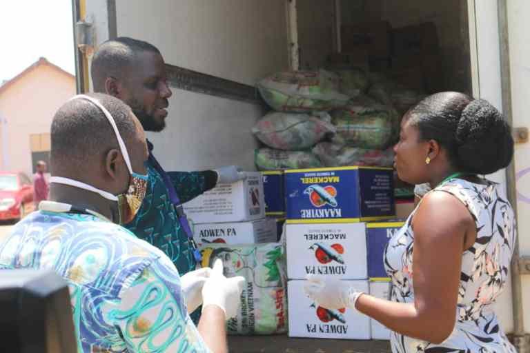 GHOne TV News Anchor, Ms. Serwaa Amihere, led the teams from the two institutions to present the items which included nose masks, sanitary items, T-shirts, bags of rice, cooking oil and other foodstuffs.