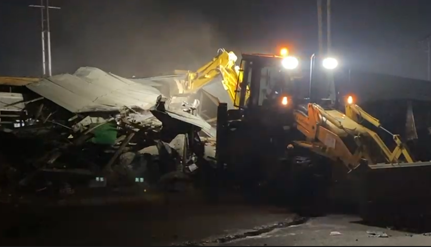 The operation, which levelled several makeshift structures and stalls, is part of a proposed urban redevelopment project aimed at transforming the site into a modern store complex.