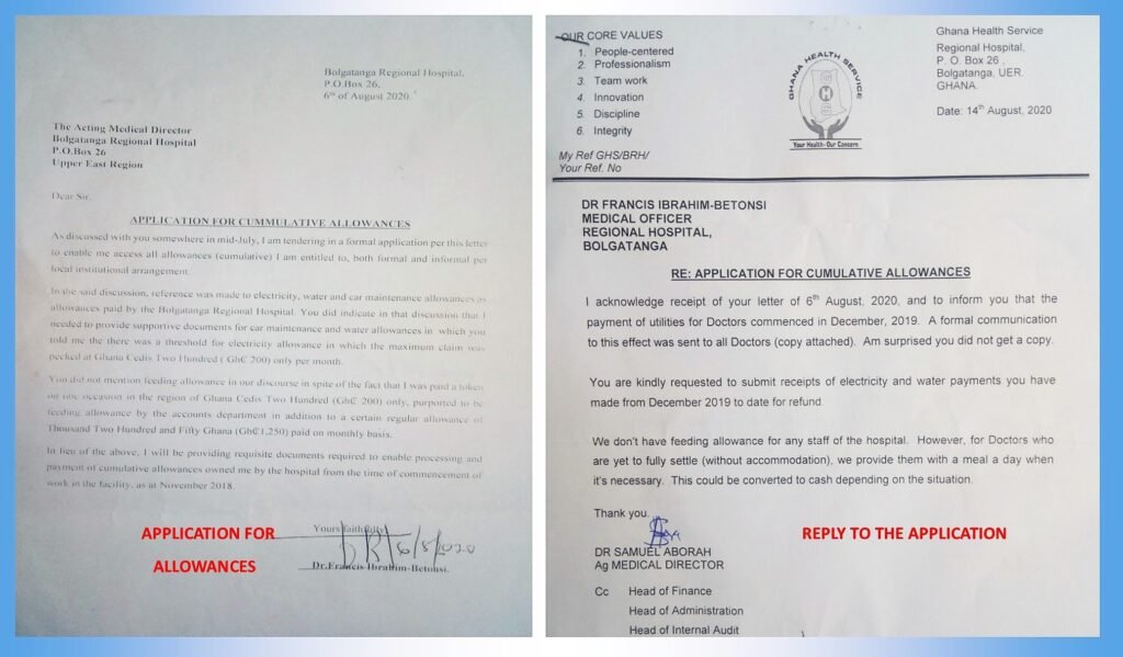 There is a clear conflict between what Dr Aborah told Starr News and the content of a letter Dr Aborah had issued in reply to an application letter Dr Ibrahim-Betonsi wrote to the hospital’s management in connection with the allowances.