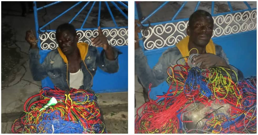 A cable thief has been arrested at Akyem Osiem by residents and handcuffed to a building awaiting the arrival of the police.