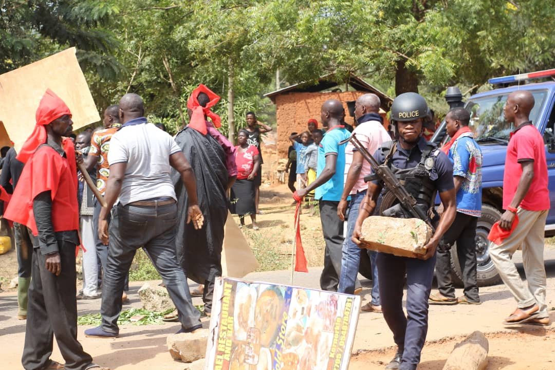 An attempt by a six-member armed police team from Asesewa to force the residents clear the road initially failed as the residents began to fight the police.