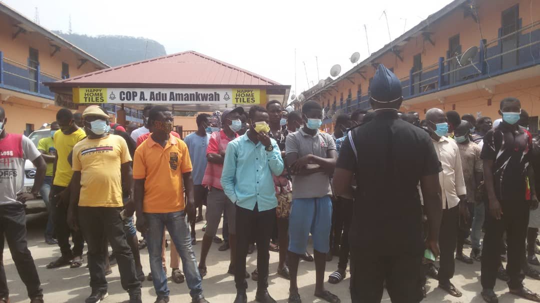 Addressing the suspects, the Police Commander Chief Superintendent Raymond Erzuah said he was awaiting further directive from the Regional Police Commander whether or not to prosecute them or have them sign bonds.