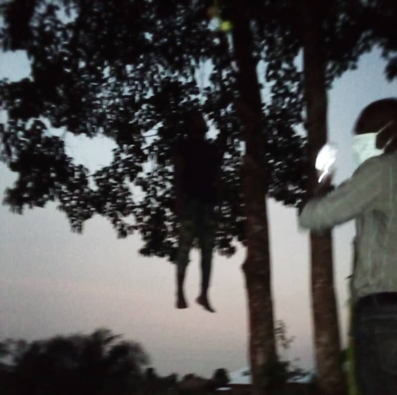 The deceased, name yet to be disclosed, was found hanging on the tree by residents .