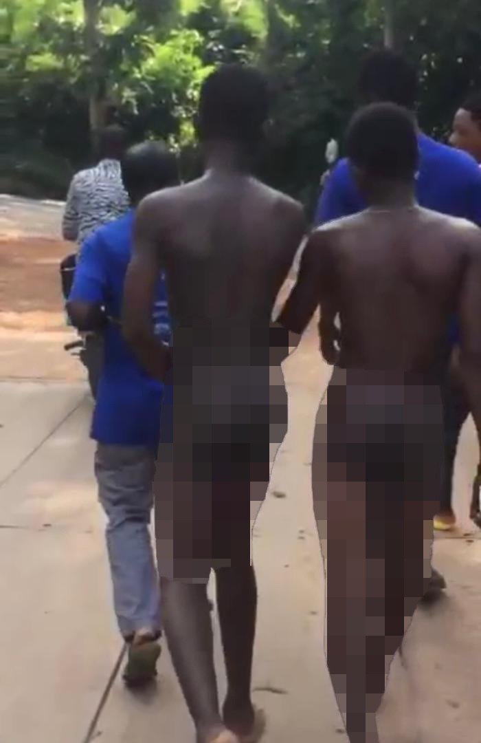 Two teenagers have been stripped naked and paraded on the streets of Akuapem Adawso in the Akuapem North Municipality of the Eastern region over an alleged GHC100 theft.