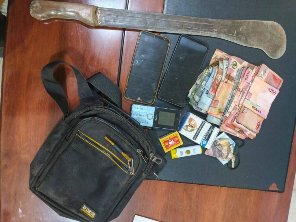 The police also retrieved several items during the operation, including live ammunition, three cutlasses, a cash amount of GH¢15,717, eight mobile phones, an identification card, and other items believed to be linked to the robbery.