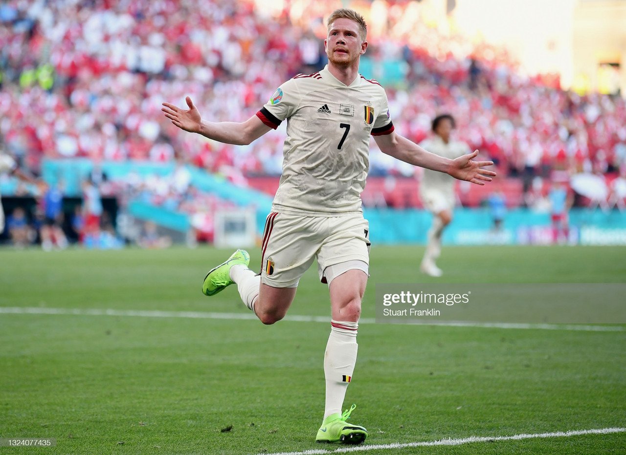 Kevin de Bruyne inspired Belgium to a comeback win against Denmark that secured their place in the last 16 of Euro 2020 as fans and players paid tribute to Danish midfielder Christian Eriksen, who is recovering after suffering cardiac arrest.