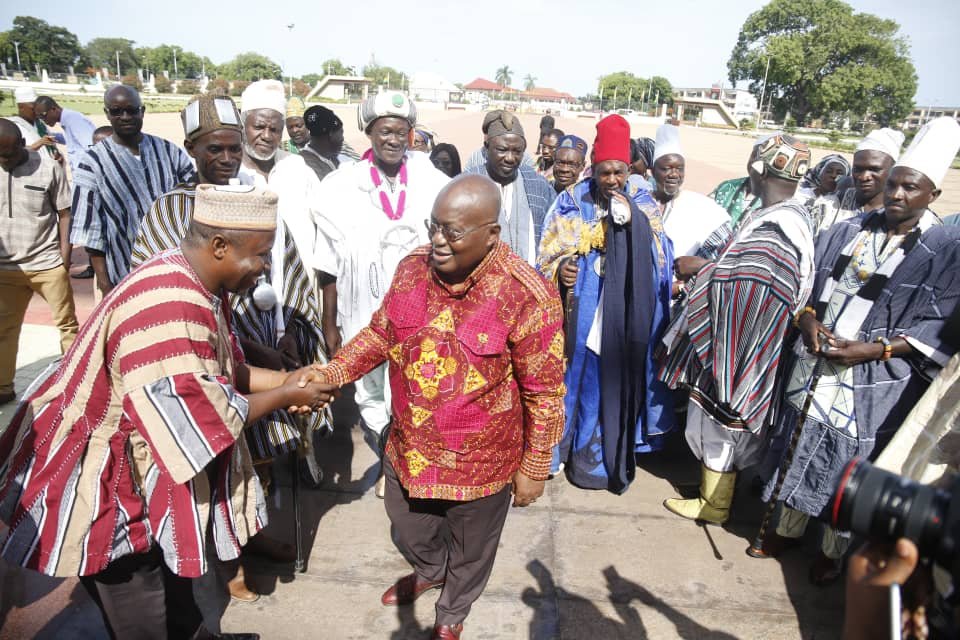 In the address of the Wa Naa, Fuseini Seidu Pelpuo IV, read on his s behalf by his Secretary, Jinpenhi Naa Kadri Ibrahim, the traditional ruler also requested of the President to expedite the action aimed at completing the process of making the Wa Campus of the University of Development Studies (UDS), an autonomous University. The conversion of the Wa Polytechnic into a technical university as well as the expansion and the giving of a facelift to the Wa Regional hospital was also put forward by the delegation. Additionally, the commercialization of the Wa airport and a proposal to split the Wa Municipal Assembly into two to bring local governance closer to the people of the area were also tabled before the President by his visitors. They extended an invitation to the President to be their special guest of honour for the celebration of the Centenary Anniversary of the annual Dumba Festival in 2020.