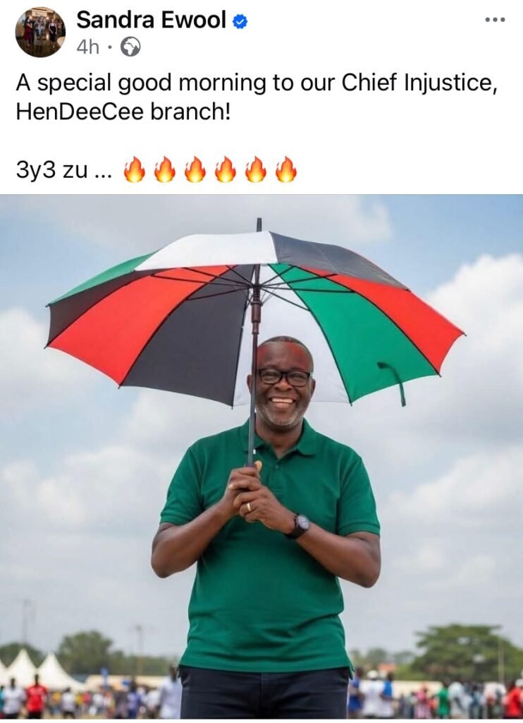 The Facebook post, published by ‘Snadra Ewool’ on November 11, 2025, captioned ‘‘A special good morning to our Chief Injustice, HenDeeCee branch!”, generated 431 reactions, 248 comments and 7 shares in 4 hours, with some social media users suggesting that it proves the Chief Justice is politically aligned.