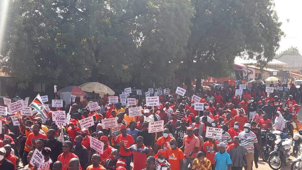 A great blanket of thick, dark-coloured smoke from bonfires hung over the highways of the Upper East Region with a sporadic display of fireworks as aggrieved supporters of the National Democratic Congress (NDC) held a demonstration Wednesday over the results of the presidential election declared by the Electoral Commission (EC).