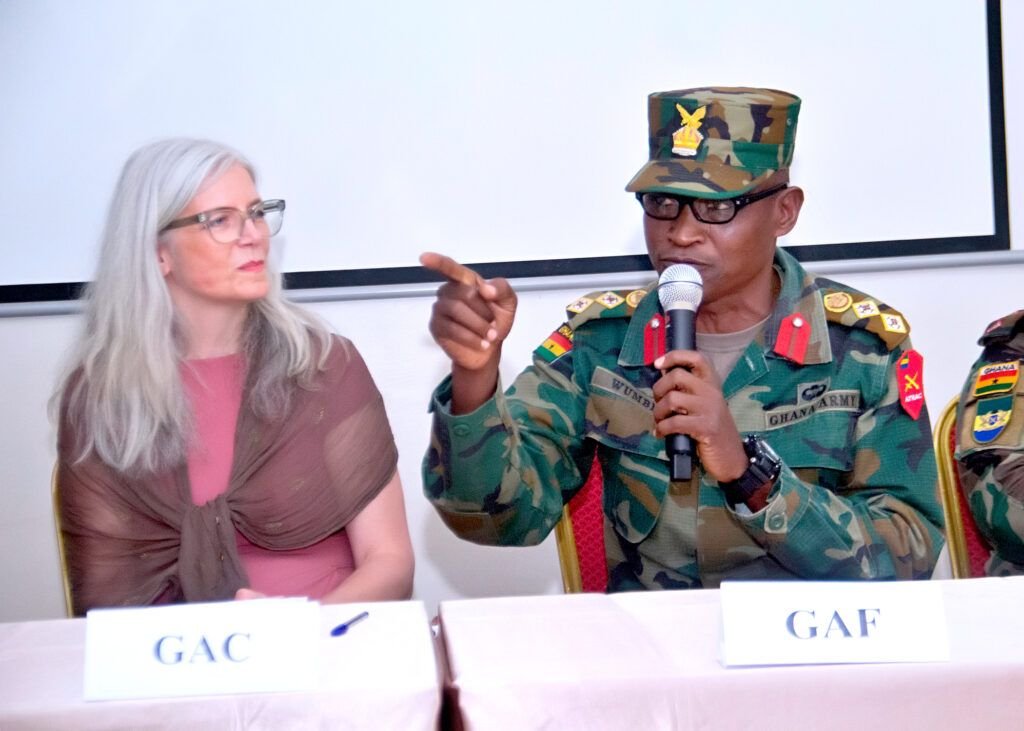 Gender Adviser to the Ghana Army, Col. Rahinatu Sledge Alando, on behalf of the chief of Army staff pledged the Army’s unwavering support for the capacity building of Gender Focal Persons. In her remarks, she expressed her happiness in being part of a workshop like this especially to promote gender mainstreaming in all army commands, brigades and units. According to her, the Ghana Army is committed to attaining the UN resolution 1325 and the sustainable development goal 5. Her remarks were backed by Col. Mohammed Wumbei, a representative from the GAF who stated that the GAF in efforts to mainstream gender had revised regulations and CSIPs and had also launched their Gender Policy. He particularly urged the GAF to encourage and enforce gender equality regardless of very realistic challenges they may face.