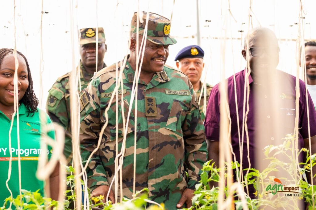 The Chief of the Defence Staff (CDS), Lieutenant General William Agyapong, on Wednesday, March 4, 2026, visited Agri-Impact Group’s state-of-the-art greenhouse enclave in Dawhenya to explore a strategic partnership aimed at strengthening Ghana’s agricultural sector and reducing reliance on food imports.