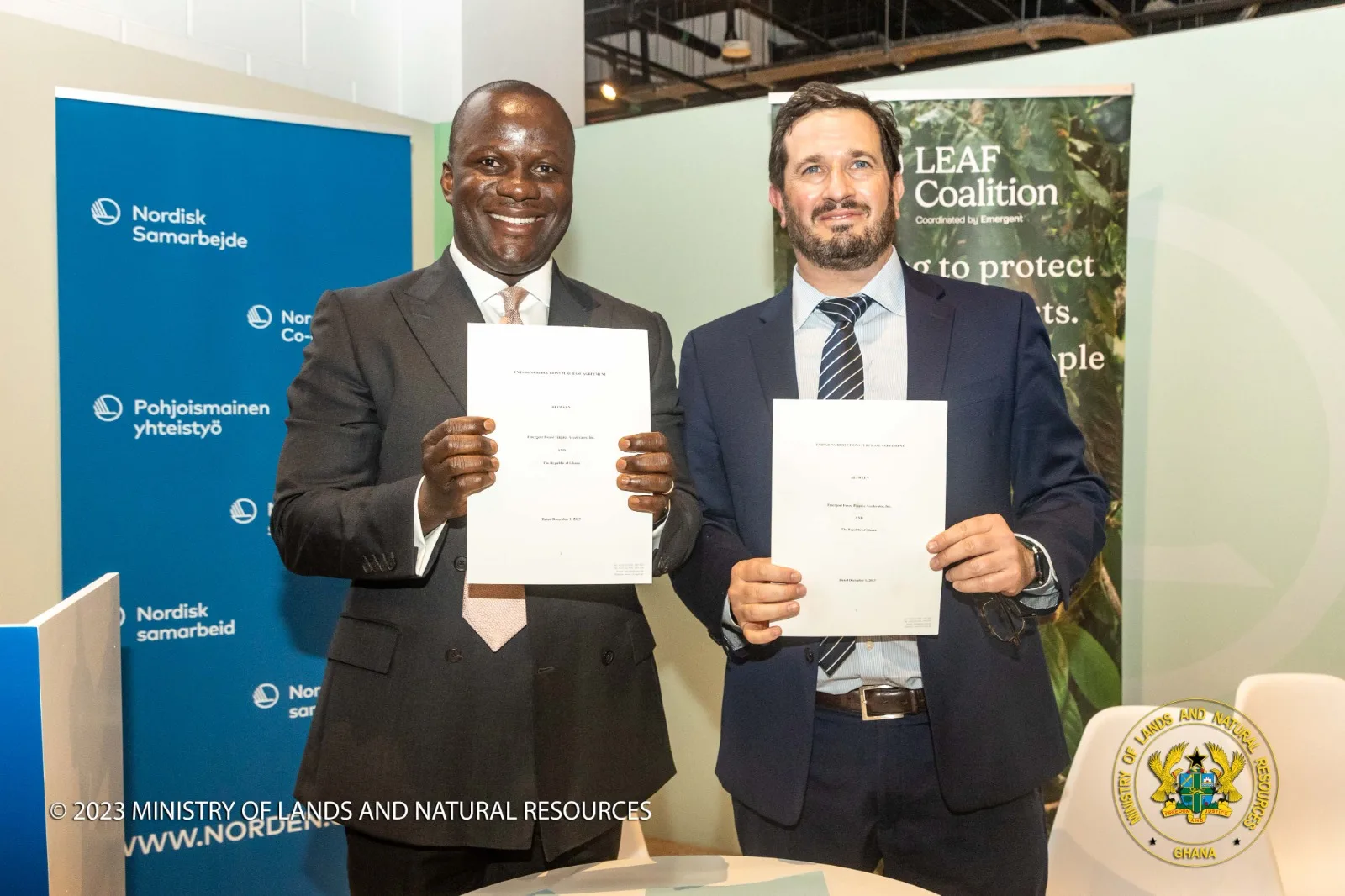 The Forestry Commission, under the auspices of the Ministry of Lands and Natural Resources, has signed an Emission Reductions Payment Agreement (ERPA) with Emergent Forest Finance Accelerator Incorporated (Emergent), a US-based non-profit organisation that serves as the convenor and coordinator of the Lowering Emissions by Accelerating Forest Finance(LEAF) Coalition.