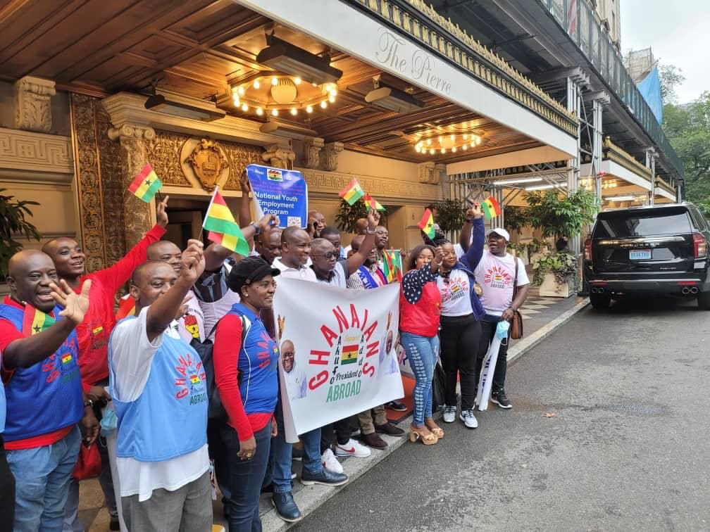 Ahead of his sessional address at the floor of UN to the General Assembly, Ghanaians Abroad showed up at his hotel and at the Dag Hammarskjod Park to show him support as he delivers his 5th Statement to the United Nations.