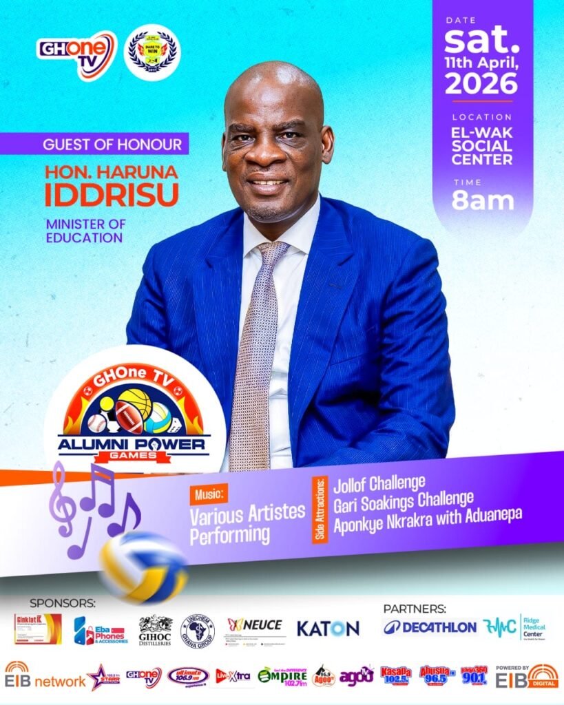 The Minister for Education, Haruna Iddrisu, has been announced as special guest of honour for the GHOne TV Alumni Power Games scheduled for Saturday, April 11, 2026.