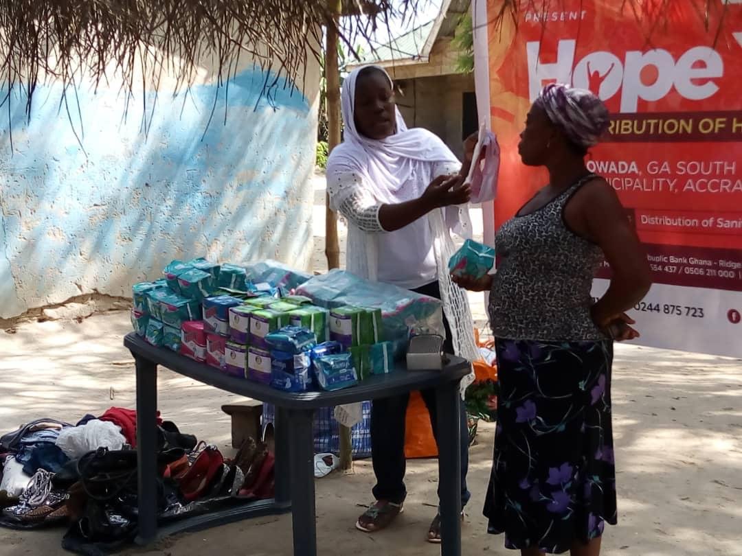Hope Works Ghana has distributed sanitary pads and other hygienic products to over 100 adolescent girls and women in Sowada, a deprived community in the Ga South Municipality in Greater Accra Region.