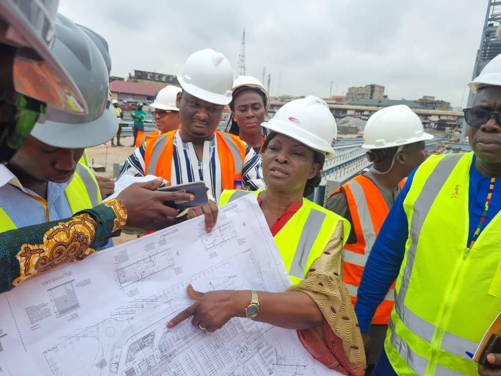 [9:51 pm, 03/07/2022] Stephen Kasapa: Hon. Gifty Ohene Konadu, National Coordinator, Monitoring & Evaluation Secretariat, Office of the President being taken through the plan of the Ultra Modern Kumasi Central Market