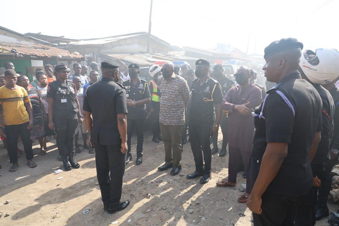 The Minister toured the scene with the Inspector General of Police and other senior officers of the Ghana Police Service to assess the extent of damage and also interact with the traders.