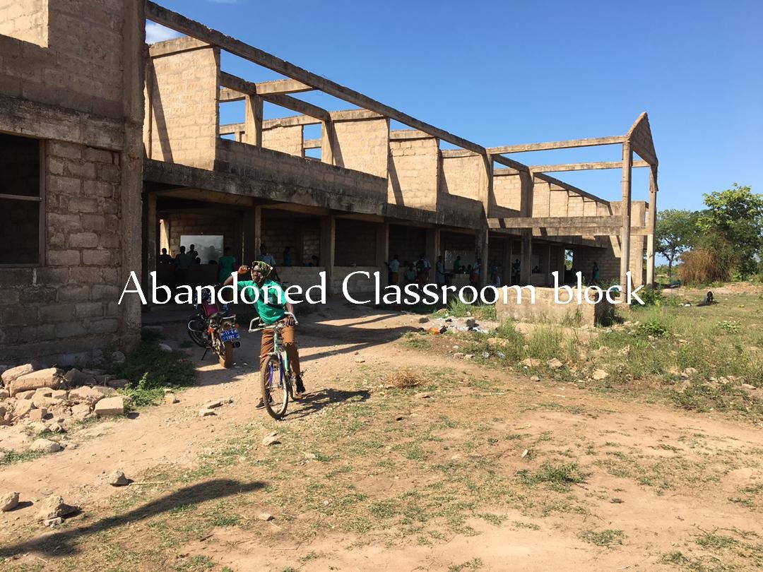 A two-storey administrative, one storey dormitory, and a 12 units storey classroom blocks started in 2010 and reached various levels of completion have all been abandoned worsening the accommodation crises owing to exponential increase in students’ population due to the free senior high school policy.