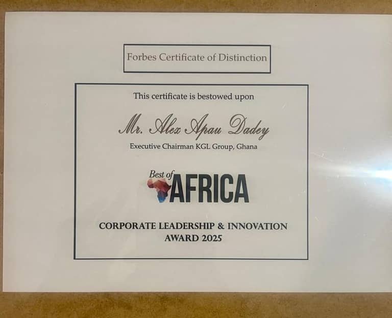 Indeed, Mr. Alex Dadey deserves to be celebrated as a Statesman and successful entrepreneur who uphold service to God, Country, and Humanity, and Forbes Media is proud to be associated with the brand of KGL Group and Mr. Alex Apau Dadey.