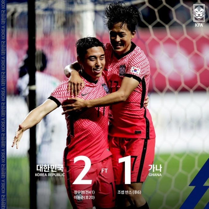 Jung Woo-young’s tapped in the first goal for the South Koreans after the first effort from his teammate hit the post.
