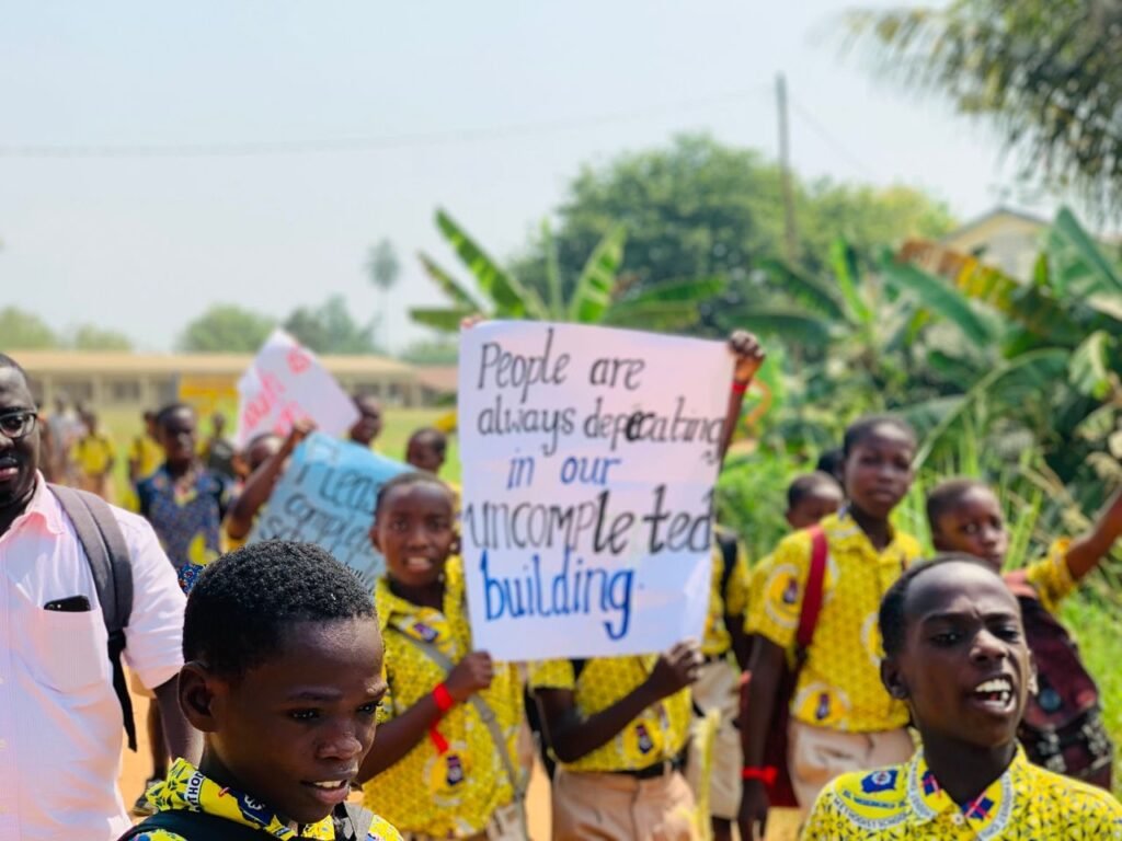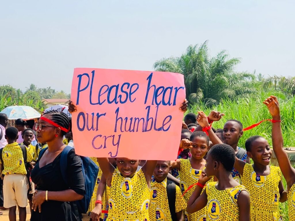 Frustrated by the lack of response, pupils of the school have embarked on a peaceful demonstration within the community, calling for immediate intervention and demanding a clean, safe, and dignified learning environment.