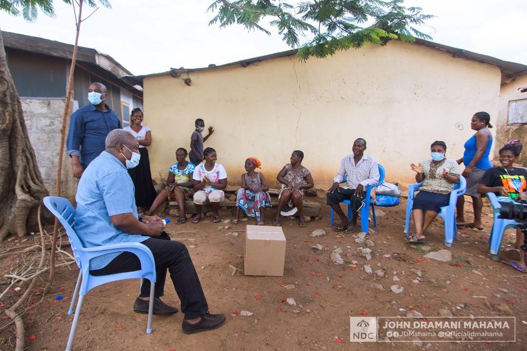 The flagbearer of the National Democratic Congress (NDC) John Mahama on Sunday visited New Powmu/Tusker, a fishing community in the Asuogyaman Constituency for a community engagement programme.