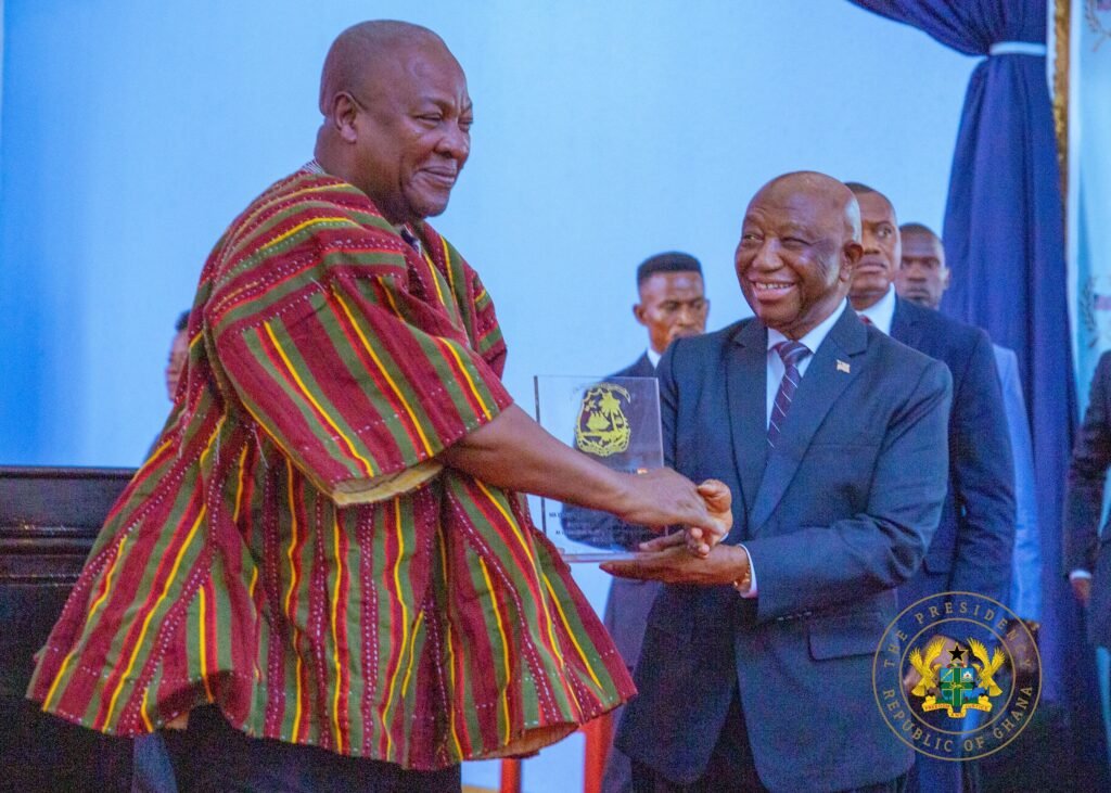 President Mahama received Ghana’s honour from the Liberian President on behalf of the Ghana Armed Forces and the people of Ghana for the contribution of its gallant soldiers.