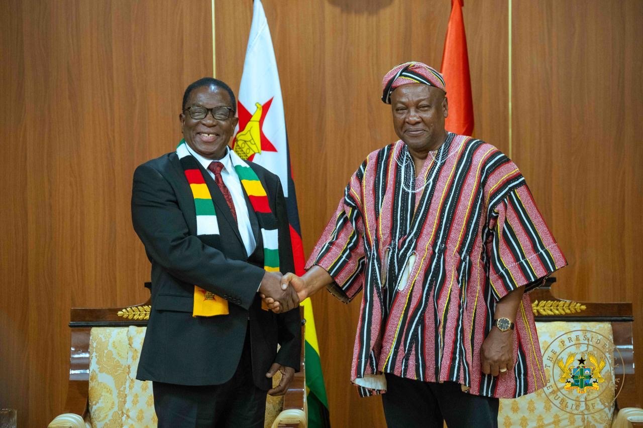 President John Mahama has welcomed Zimbabwean President, Emmerson Mnangagwa to Ghana for a three-day State visit.