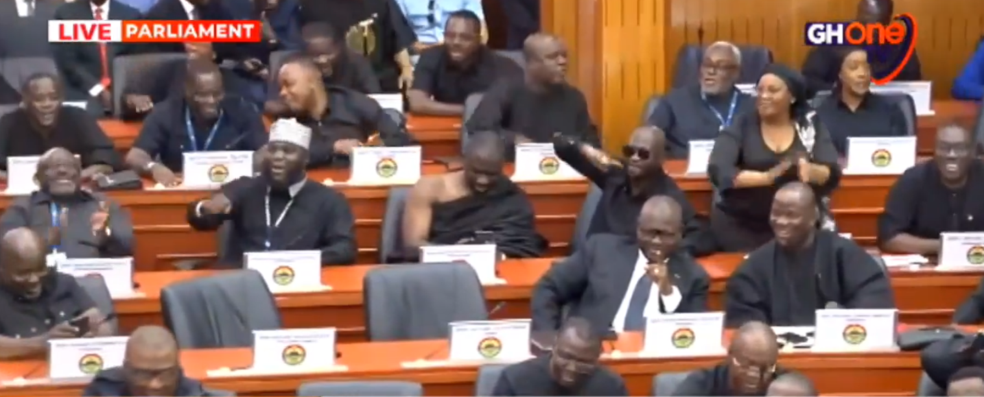 Minority Members of Parliament (MPs) from the New Patriotic Party (NPP) appeared in Parliament wearing black attire on Friday, February 27, ahead of President John Dramani Mahama’s State of the Nation Address (SONA).