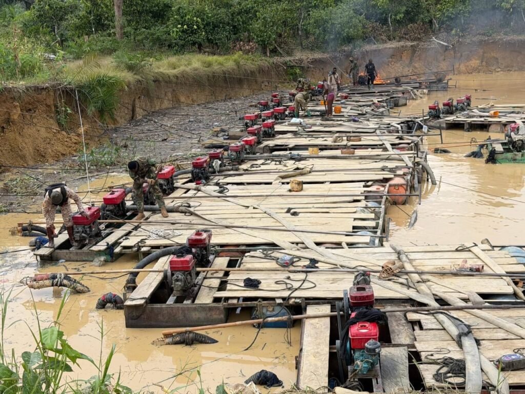 Following the escape of the miners, the task force dismantled and destroyed all equipment found at the site. In total, 275 pieces of illegal mining equipment were destroyed, including; 75 dredging Changfang platforms, 50 gold-washing platforms and 150 Changfang machines burnt on the riverbed.