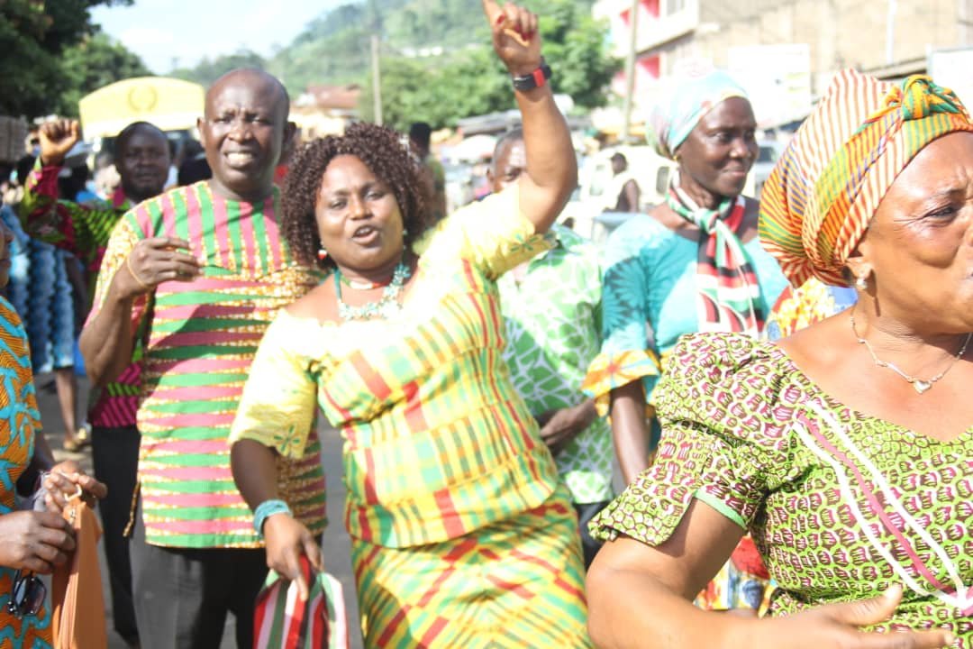 Lucy Anim Koryo stole the show with energetic display of fascinating dancing moves to ” jama songs” by her supporters on the street across the front view of the regional Office of the NDC sent the whole place agog.