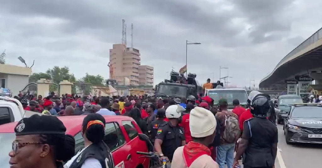 “We are here at the Jubilee House, the seat of government. The New Patriotic Party through the National Youth Wing of the party staged this mammoth protest against what we would describe as a deliberate weaponization of state institutions, specifically the security institutions, purposely to harass members of the opposition party. So the party is fully behind the National Youth Wing and today we are here to present this petition to His Excellency the President John Dramani Mahama,” Nana B stated.