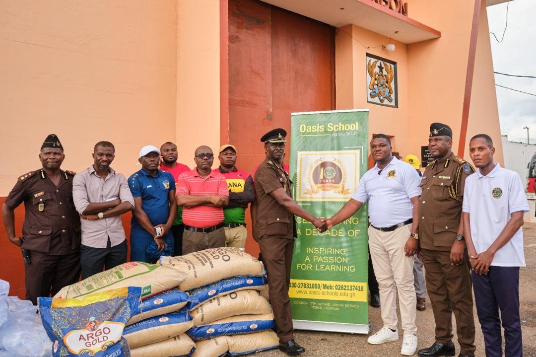 With the support of the school’s leadership team, including Vice Principal Mr. Gideon Ashitey, Oasis International School swiftly donated ten 50kg bags of rice and 100 bags of sachet water to the inmates — a contribution symbolizing care, solidarity, and shared humanity.