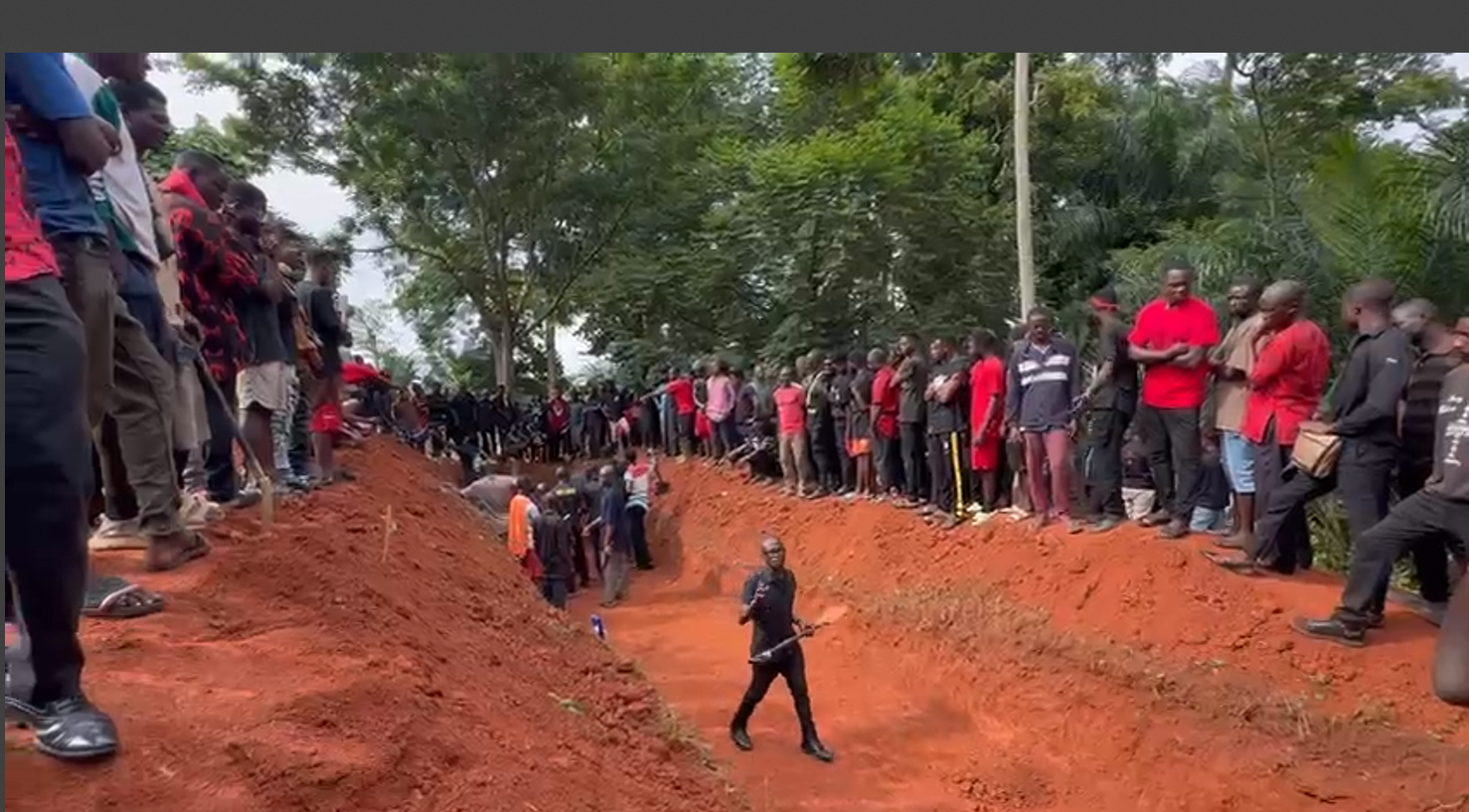 The ceremony was marked by emotional scenes as pallbearers lowered the caskets into a single, large communal grave a powerful symbol of unity in life and death.