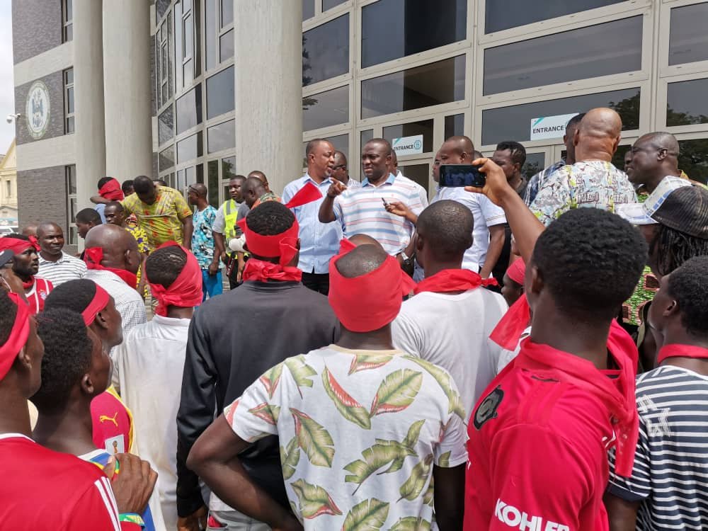 The youth, numbering about 50 and clad in red bands marched to City Hall, the office of AMA and Head Office of CODA to sound a stern warning to leadership of the authority and assembly that any attempt by any section of the constituency to undermine the successful construction of the artificial pitch will meet their wrath.