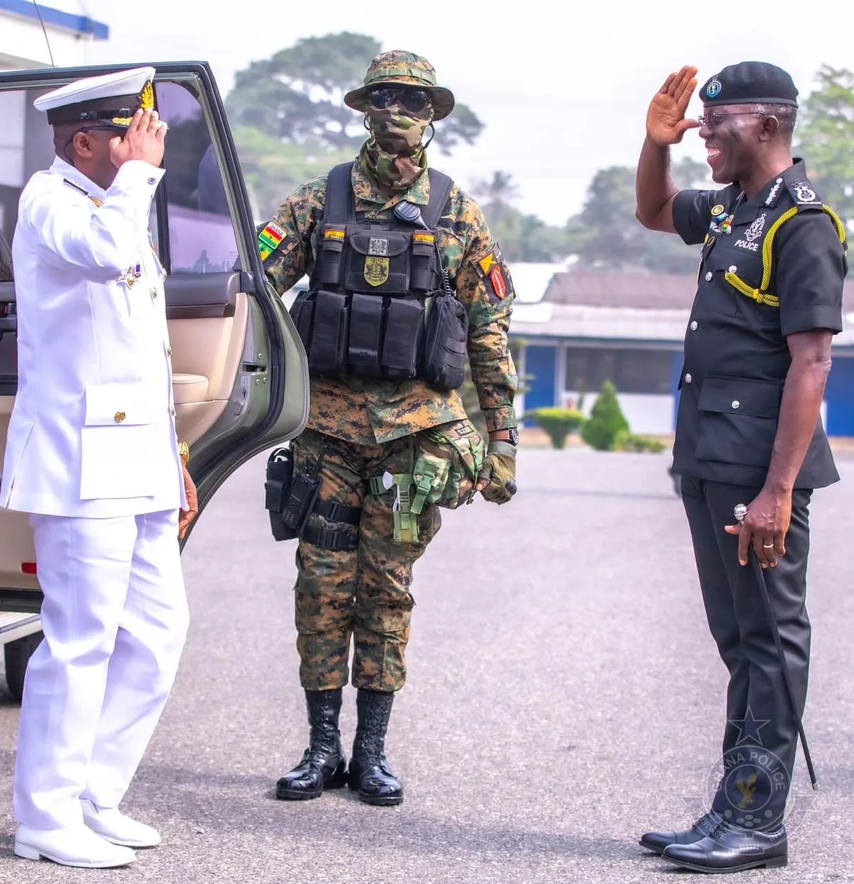 The outgoing Chief of Defense Staff Vice Admiral Seth Amoama has expressed his gratitude to the Inspector-General of Police Dr George Akuffo Dampare for the farewell guard of honor held for him at the Police headquarters on Tuesday January 30,2024.