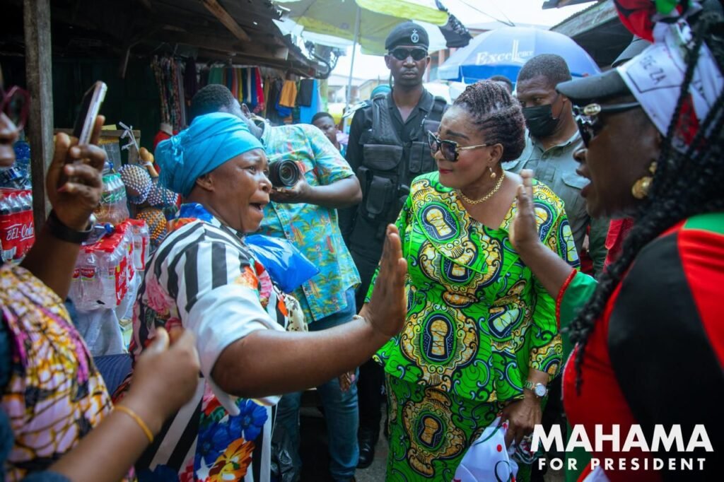 Former First Lady Lordina Dramani Mahama takes the #Mahama4Change2024 campaign to the Makola and Agbogbloshie markets. Mrs Mahama interacted with traders and shoppers in both markets, sharing details of the NDC and John Mahama’s plans to establish a Women’s Development Bank to support female business owners and traders with financial support to expand and set up new businesses.