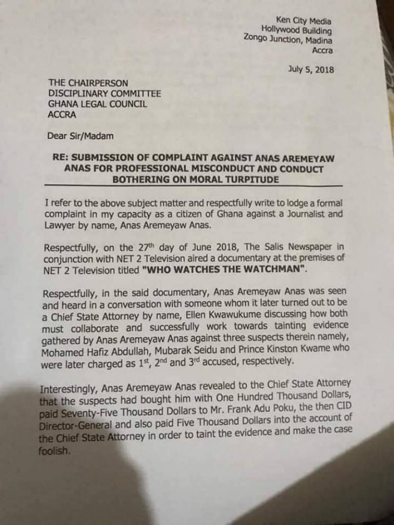 “It is my humble opinion that such professional misconduct should not be countenanced at the Bar and therefore urge your revered council to conduct thorough investigations into the behavior of Anas Aremeyaw Anas,” portions of the petition to the General Legal Council said.