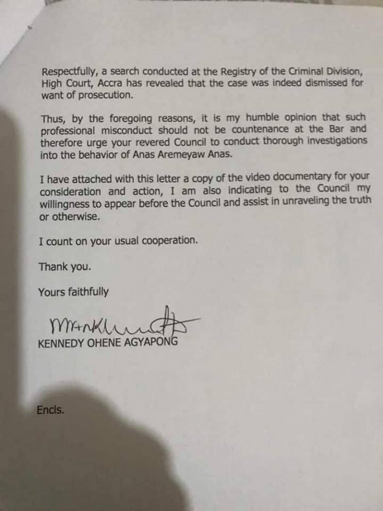 The Member of Parliament for Assin Central Kennedy Agyapong has petitioned the General Legal Council to probe investigative journalist and lawyer Anas Aremeyaw Anas for professional misconduct.